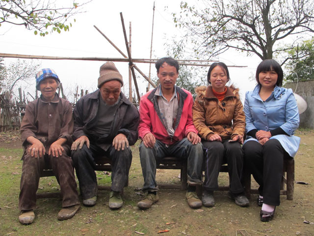 英子姐姐回访胡梦卿家,与胡梦卿奶奶及村委会干部们合影