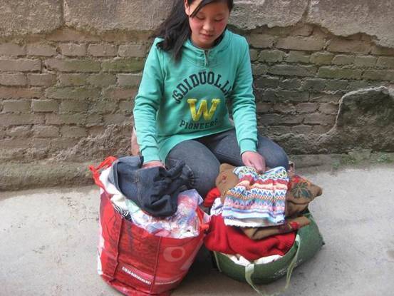 图为浙江宁波好人梁友芬女士为贫困学生王海琳捐赠的衣物
