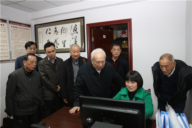 闵振环一行来到英子姐姐工作室,听取刘发英介绍了"英子姐姐"网络助学团队工作情况,观看了"英子姐姐"网络助学相关视频.闵振环在听取介绍后对英子姐姐网络助学的事迹表示赞赏。