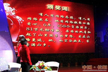再接着,他宣读2010年宜昌十大民选新闻人物组委会写给英子姐姐的颁奖词:“有人用网络恶搞,有人用网络出名,她用网络凝聚四海爱心。6年,458个贫困孩子,81万元助学款,柔弱的双肩扛起了山里孩子的梦想。爱在山路蔓延,她,如空谷幽兰,芬芳满山乡。”