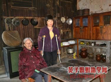田秀娟的房子是60年代初期修建的那种土砌瓦盖的房子,由于年代久远和没有维修,已非常破旧,满眼都是裂口。在光线暗淡的厨屋里,我从田秀娟86岁的奶奶和残疾母亲的流泪诉说中,了解到了这个家庭的贫困与不幸。