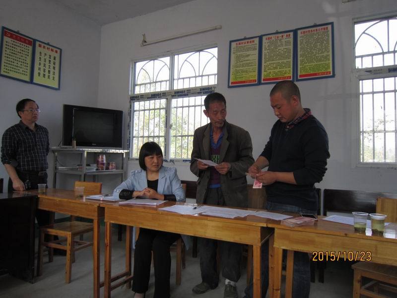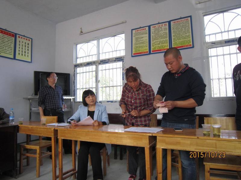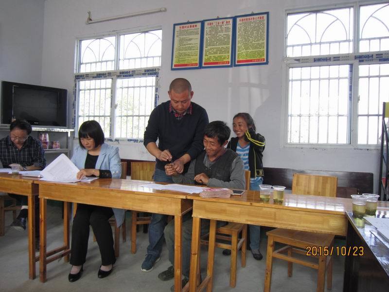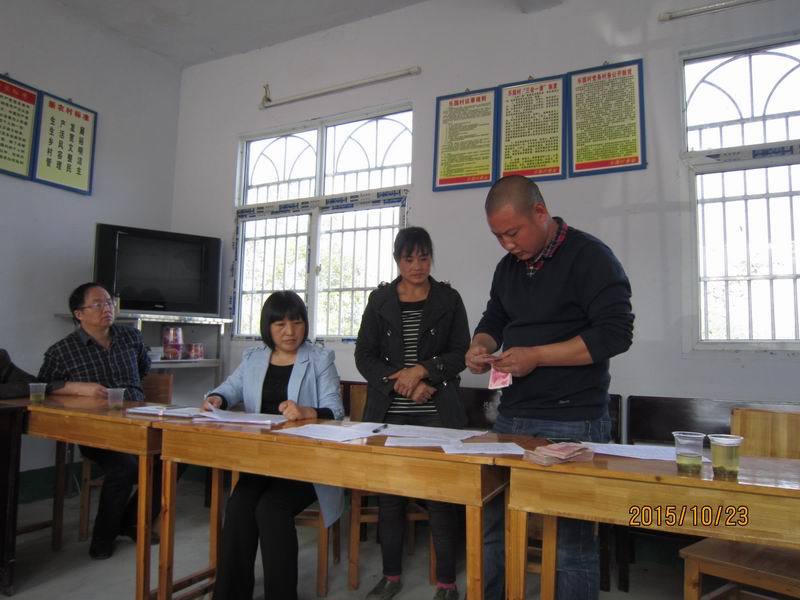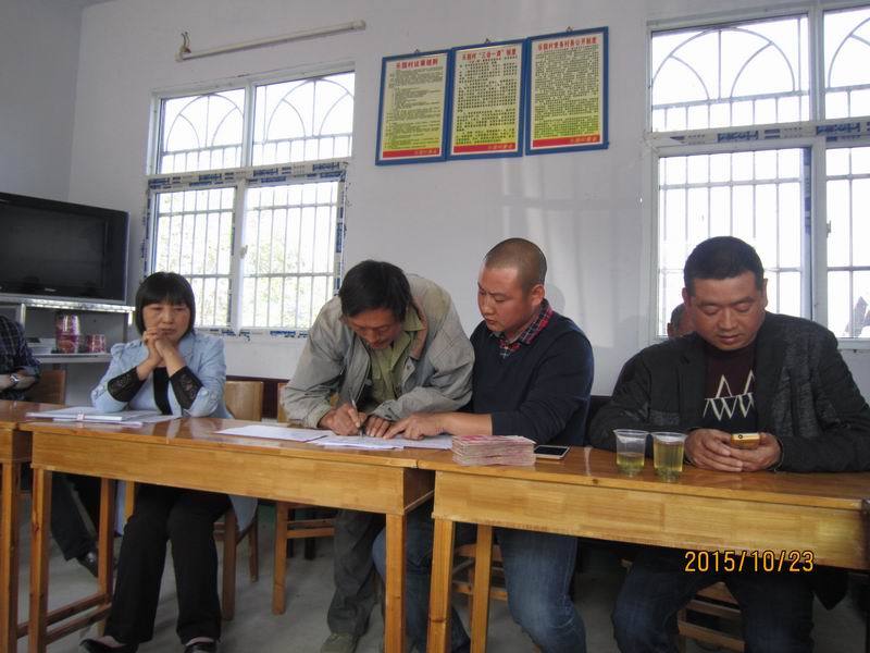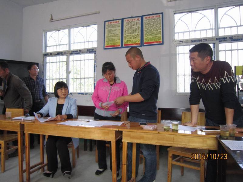 我们坐定之后,由村委副书记覃炜同志依次介绍到会的乡亲们的家庭情况,这些家庭,都是村委会国庆节期间,牺牲自己的休息时间,一家一户家访后认定的资助对象。覃炜,壮壮实实的小伙儿,三十来岁,目光纯净,眉宇之间透着一股孩子的英气,他如数家珍的介绍每一个人,每一个家庭,每一个孩子,甚至每一个孩子的兴趣爱好,仿佛他就是家庭中的一员。他说蒋蓉蓉的画画的很好,尤其是风景画,那可是跟照片一个样儿。